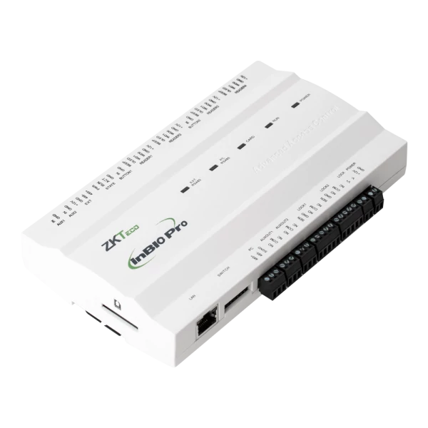 Biometrikus vezérlő központ, két ajtó két irányú vezérléséhez. Az INBIO biometrikus vezérlőpanelek nagy biztonságú, korszerű beléptető rendszerek, minden olyan helyre ideális ahova biometrikus azonosítás alapú beléptetést kell megoldani, akár több ajtónál is. A belépési adatok nem az olvasóban, hanem a vezérlő memóriájában vannak tárolva, amit számítógépen keresztül lehet felügyelni. RS-485 és TCP/IP kommunikációnak köszönhetően akár több eszközt is rá lehet kötni a rendszerre. A könnyedén átlátható és kezelhető angol nyelvű szoftverben minden beállítás megtalálható, amelyre szükség lehet egy összetett rendszer kiépítésekor. A valós idejű megfigyelés funkció nagyban megkönnyíti az ellenőrzéseket.