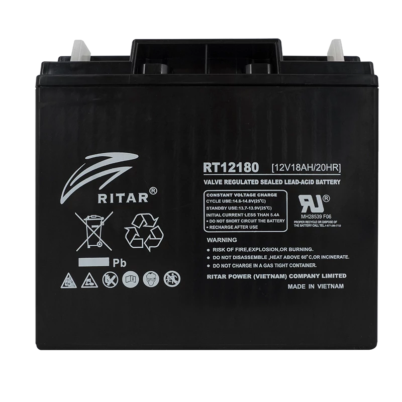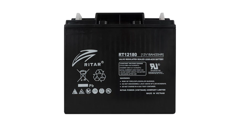 Az AKKU-12-18-RITAR egy biztonságtechnikai akkumulátor, alkalmas szünetmentes tápegységek biztosítására. 12 V DC tápfeszültséggel és 18 Ah-s kapacitással rendelkezik.