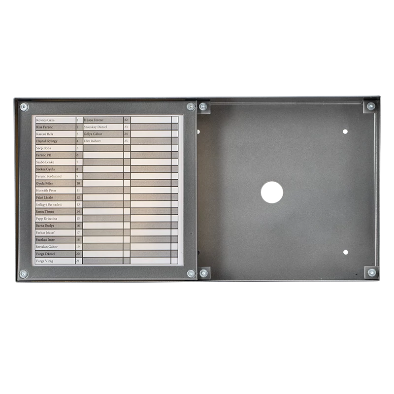A kaputelefonok elengedhetetlen kellékei a lakásoknak, használatukat mindenki ismeri. Választékunkban talál egy- vagy többlakásos, audió vagy videó kaputelefonokat, valamint számos bővítő modult, hogy az Önnek legmegfelelőbb konstrukciót tudja megvalósítani. A DP kaputelefonok hazánkban rendkívül széles körben elterjedtek, köszönhetően egyszerű használatuknak és könnyű szerelésüknek. Egyszerű audió rendszert biztosítanak két vezetéken, megbízhatóan működnek. DPRS50-HFK egy esővédő keret a DP központokhoz. Az esőkeretbe a központot lehet behelyezni, a központ helye mellett 63 lakásos névtábla taláható. A keret felületre szerelhető. A letöltések között található névtábla kiköltését segítő pdf.