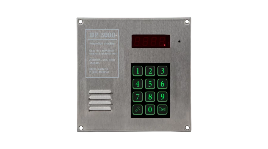 A DP3000-INOX egy régi típusú kültéri központ szerelőház nélkül. Érintésérzékeny nyomógombokkal és kártyaolvasóval rendelkezik. Inox háza esztétikus megjelenést és tartósságot bíztosít.