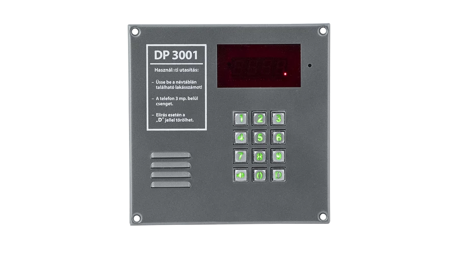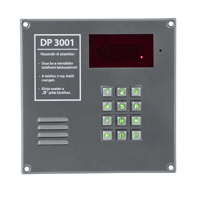A DP3001-INOX egy régi típusú kültéri központ szerelőház nélkül. Fizikai nyomógombokkal és kártyaolvasóval rendelkezik. Inox háza esztétikus megjelenést és tartósságot bíztosít.