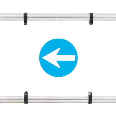 Az YK-PB|TABLA - Egy lengőkapu karra szerelhető áthaladás irány jelző tábla, 280 x 280 x 5 mm-es víztiszta Plexi, 150 mm átmérőjű matricákkal.