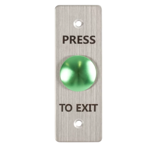 Az FMB-C-25SS-2 egy lapos, gomba alakú mikrokapcsolós nyomógomb "PRESS TO EXIT" felirattal és állított téglalap alakú, rozsdmentes acél pajzzsal. A gomb piros és zöld színben kapható.