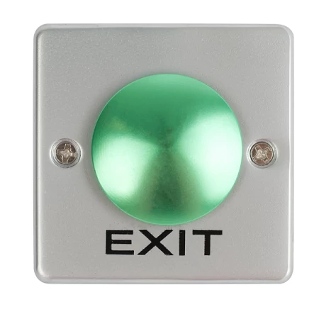 Az FMB-G-25SS-2 egy lapos, gomba alakú mikrokapcsolós nyomógomb "EXIT" felirattal és rozsdamentes fém kiemelő kerettel a felületre szereléshez. A gomb piros és zöld színben kapható.