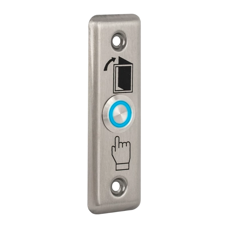 A PBK-811A(LED) egy egyszerű mikrokapcsolós nyomógomb, rozsdamentes acél pajzzsal és LED-es világítással. Kapható kék, zöld, valamint piros LED-del. Külön kiemelő kerettel akár felületre is szerelhető.