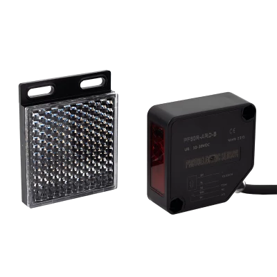 PF50R Lézeres reflexív fotocella, kialakításának köszönhetően elegendő egy oldalon kiépíteni a vezetékezést.