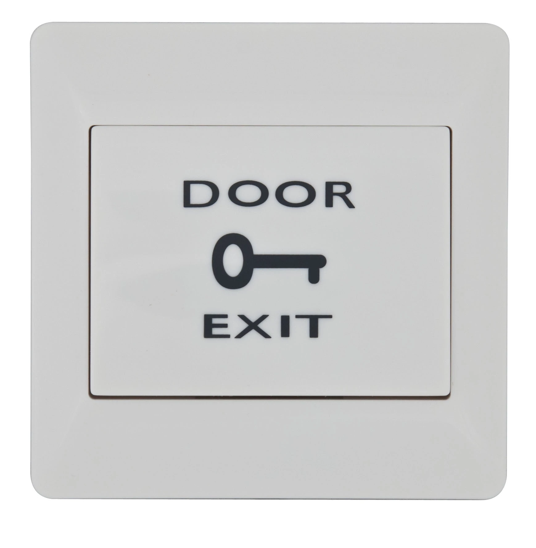 A PBK-812A egy műanyag nyomógomb "DOOR EXIT" felirattal, nagyméretű, fehér házban a felületre szereléshez.