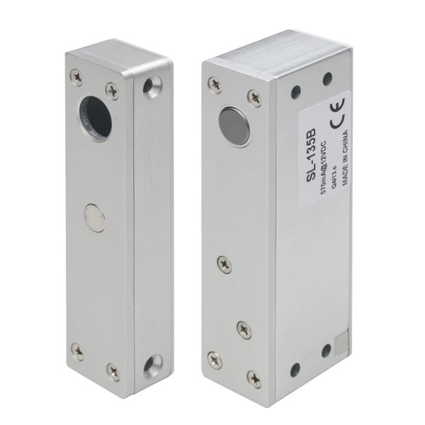 Az SL-165B egy felületre szerelhető, fail safe (áramszünet esetén nyitott), állítható visszazárási időzítésű, visszajelzéssel rendelkező csapzár.