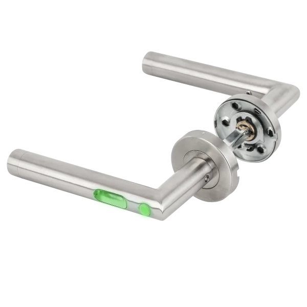 Az YH-D13 egy rugós kilincs pár kerek címmel INOX kivitelben, visszahajló, kétszer hajlított. Esztétikus, szálcsiszolt. 4 rögzítési ponttal, tengellyel. A kilincsben egy mozgásérzékelő és egy zöld vagy piros LED található, így ha a mozgásérzékelő jelet ad, a LED bekapcsol. Így sötétben is könnyedén megtalálható. Ideális hotelekbe, szállodákba. A LED tápellátását egy darab AA-s elem biztosítja, amit a kilincs végének lecsavarásával lehet cserélni.