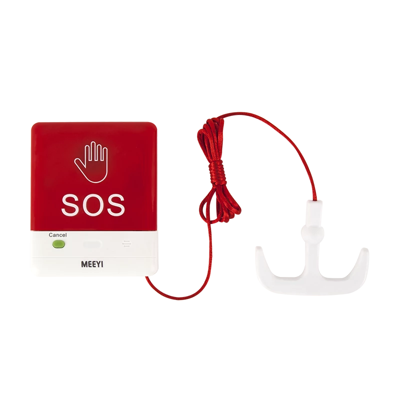 Három nyomógombos SOS gomb nyomása, zsinór húzása és törlés/nyugtázás