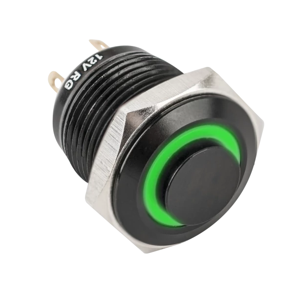 Nyomógomb fekete (piros-zöld színű LED-del) PB-16-NO-bk(LED)-rdgn