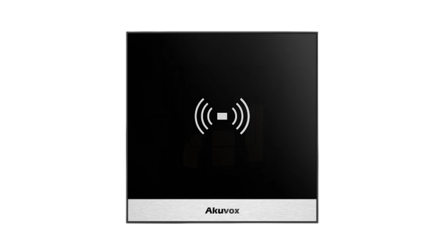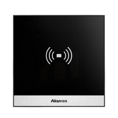 Akuvox A01S - Kültéri, önálló működésű RFID olvasó, edzett üveg előlappal, fekete fém házban.