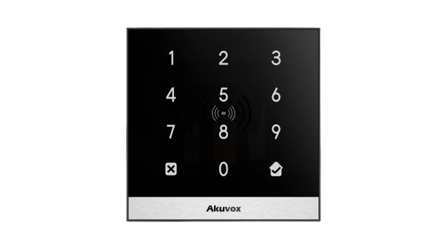 - Hozzáférés-szabályozás: Az Akuvox A02S támogatja a különböző beléptetési ellenőrzési módszereket, például az RFID-kártyaolvasót (125KHz EM, 13.56MHz MF) vagy a kódbillentyűzetes belépést. Lehetővé teszi a felhasználók számára, hogy egyszerűen kezeljék a hozzáférést az arra jogosult személyek számára.