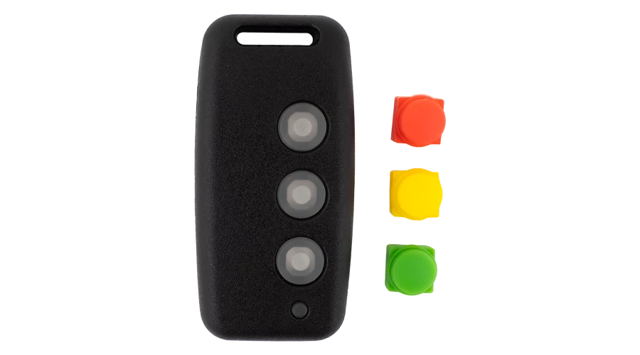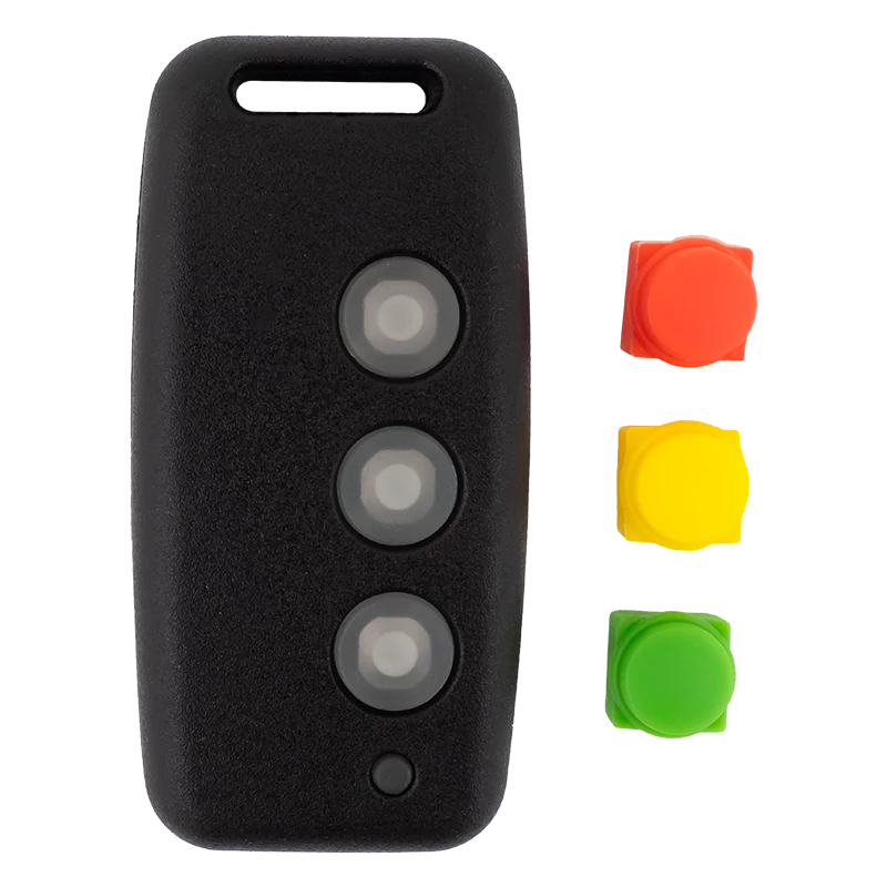 Az SMB-T009 egy háromgombos, cserélhető gombokkal rendelkező távirányító, elem állapot visszajelzéssel. A PF009007A egycsatornás adó-vevő szett kiegészítője. Ugrókódos, titkosított kódolásának köszönhetően biztonságos, zavarokkal teli környezetben is megbízhatóan látja el vezérlési feladatát. Ergonómikus kiképzése és jól megkülönböztethetőre cserélhető gombjai miatt könnyű a kezelése. A gombok nem állnak ki az adó burkolatából, így zsebben sem kell tartani a véletlen megnyomásuktól.