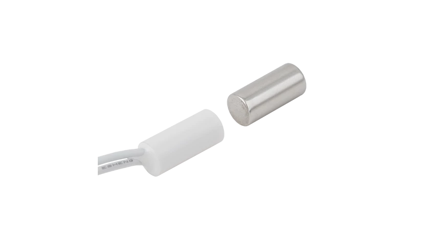 Az EB-135L egy süllyesztetten szerelhető mini méretű műanyag nyitásérzékelő. Reed relés NC kontaktus (2 vezetékes), tehát zárt ajtó esetén ad rövidzárat. Ideális beléptető rendszerek számára az ajtóállapot visszajelzésére